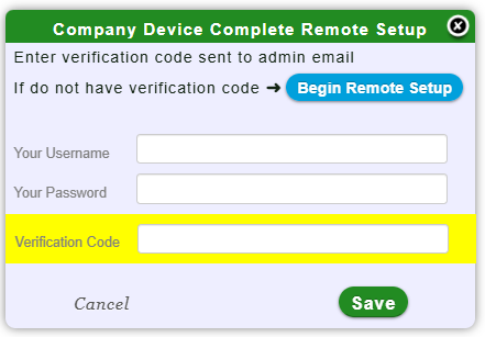 Press the "Begin Remote Setup" button to send your admin an email with the verification code